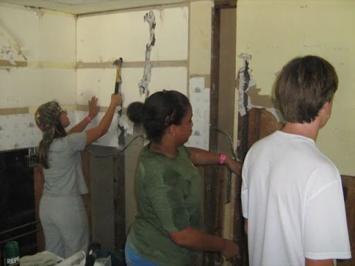 In addition we talked with some plumbers who had to ride out of their house on a boat during Katrina. They eventually came back to their house, and just rebuilt it one room at a time. There are so many stories and so little time to share. Hopefully we’ll get the chance when we get back. The kids have done a great job, and of course the adults as well. I’m blessed with this crew; I really am. Hope these pics give you an idea of what you’re praying for.