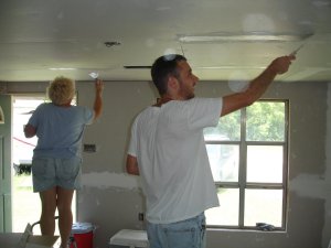 We’re are now currently done with our our house. We left it in much better shape than we found it. All in all, we ‘demolitioned’, cleaned out a ton of debris that was still there after 2 years, insulated, cut/hung/mudded/taped, dry-walled the whole house. There are just a few places that didn’t get taped.