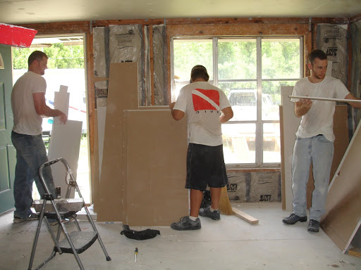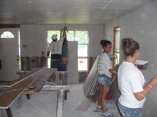 WOW! It’s awesome to see that room with no drywall and then another picture with it looking – well – like a real room, and done. You guys have done a great job. Praying for you all. Nice picture too – the crew from Manatee County in front of the manatee. Miss ya lots,Renee