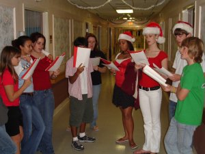 Afterwards we traveled upstairs and downstairs caroling through the hallway. We would stop after several songs and do some more “M & M.” Once again it was a beautiful site to see youth care for those who have no one.