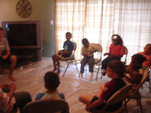 One of our youth led the gospel bracelet time, where the kids made bracelets with beads of different colors representing a different part of the gospel story (for instance, gold meant God, black-sin, red-Jesus blood, white-cleanness, etc….).
