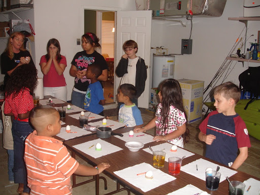 After that we were back to the garage for the egg dyeing. The kids loved it. We had 4 or 5 different students from Amy’s class, but each one brought siblings or cousins. So we had about 10 kids, including 2 from the church. Not as many as last time, but it was well worth it to share the gospel with some kids who don’t usually hear it. And they left wearing the bracelet, something that we hope will continue to point to Jesus as long as they wear it. We’ll see if they’re still on their wrists come Monday.