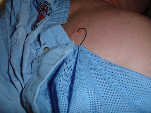 So she freaked a bit, and got her usually non-squeamish mother. She called for back-up. My brother-in-law was willing to pull it out with pliers. You know, like a band-aid. But there is a difference between something adhesive and something with a barb in your flesh.