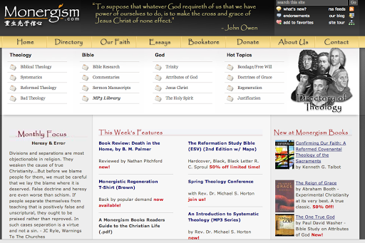 1. My fave part of Monergism, is the collection of MP3 sermons / lectures. While there are a few audio series posted I wouldn’t have included myself, like with all resources, it provides an opportunity to exercise discernment.Some of the ones I’ve especially liked are the biographical lectures by John Piper, Men of Whom the World was Not Worthy and the Tim Keller collection.